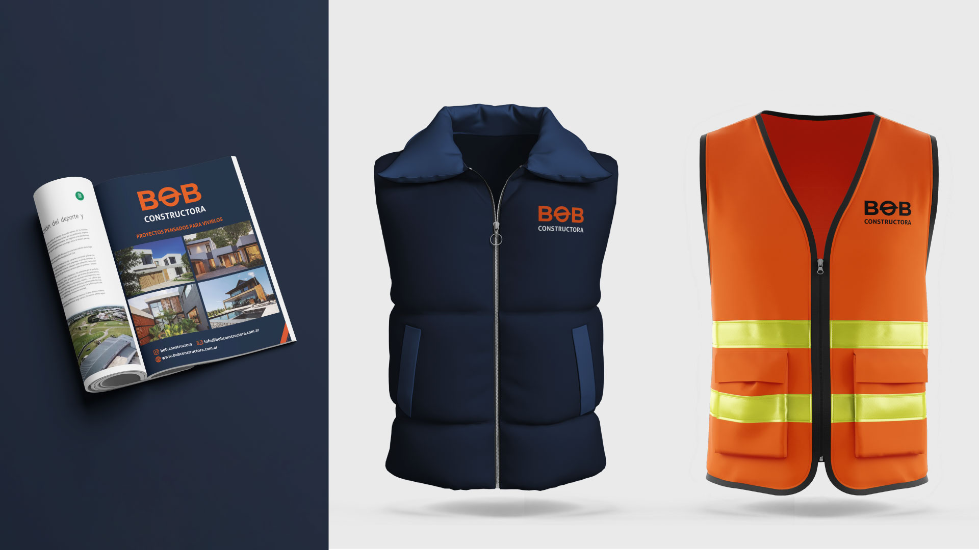 El rediseño de BOB Constructora parte de una premisa clara: simplificar para ganar fuerza y reconocimiento. Tomamos uno de los elementos más representativos de la marca, el casco de obra, y lo transformamos en el eje del nuevo sistema visual, integrándolo directamente en el logotipo para lograr mayor cohesión, identidad y recordación.